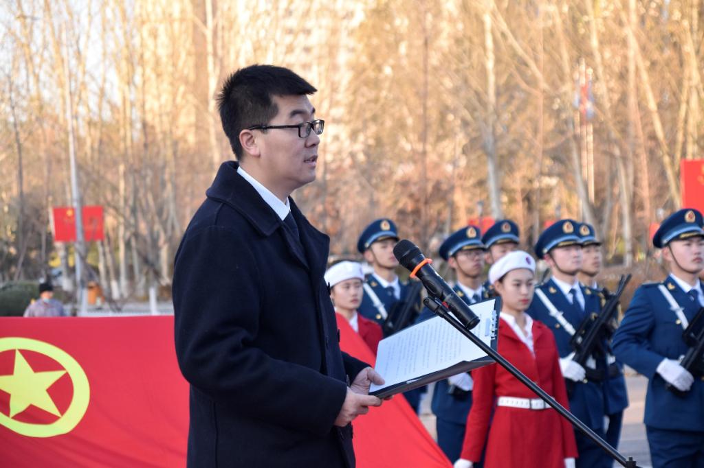 yl6776永利集团实践部部长、尖兵队礼兵分队副队长张坤同学作为学生代表发言。他为圆蓝天梦想考入沈航这所东北唯一一所以航空航天为特色的综合性大学。沈航的航空航天精神和深厚的国防军工情怀,点燃了他航空报国的激情和斗志。他努力成为一名国旗护卫队员,用挺拔的身姿、标准的动作、铿锵的步伐为菁菁校园那抹最美空军蓝增添更靓丽的色彩!他倡议沈航学子要秉承校风校训,深植弘扬六十七年以来沈航人立志蓝天、献身国防的深厚军工国防情怀,为实现沈航人的蓝天梦、人民军队的强军梦、民族复兴的中国梦而砥砺前行,拼搏奋斗,在新时代中国特色社会主义奋进的征途上书写属于沈航人的绚丽诗篇!