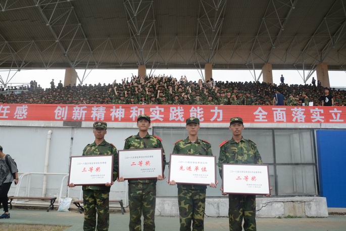 在军训总结表彰环节中,校领导为军训优秀连队及个人颁发了奖状。yl6776永利集团获得了“大学生军训工作先进单位”,“军训班队列考核二等奖”,“军训分列式考核二等奖”以及“军训连队列考核三等奖”共四项奖项。