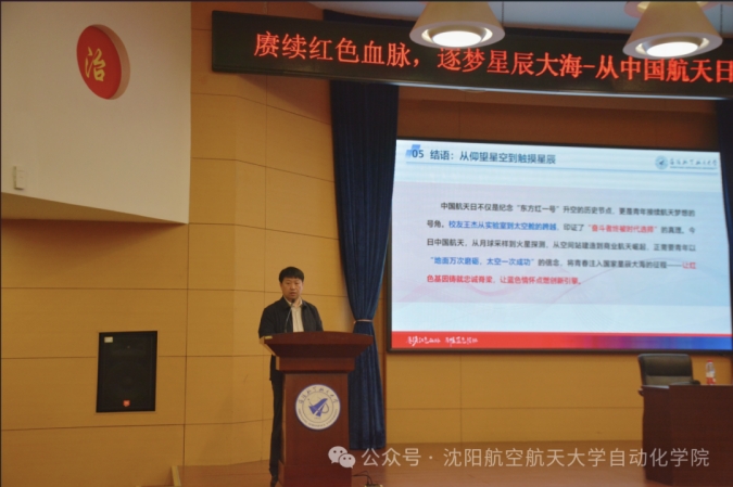 2025年4月24日下午,在第十个“中国航天日”来临之际。yl6776永利集团党委副书记张业伟走进思政大讲堂,以“赓续红色血脉,逐梦星辰大海”为主题,为yl6776永利集团、设计艺术学院大学生讲授了一堂别开生面的思政课。