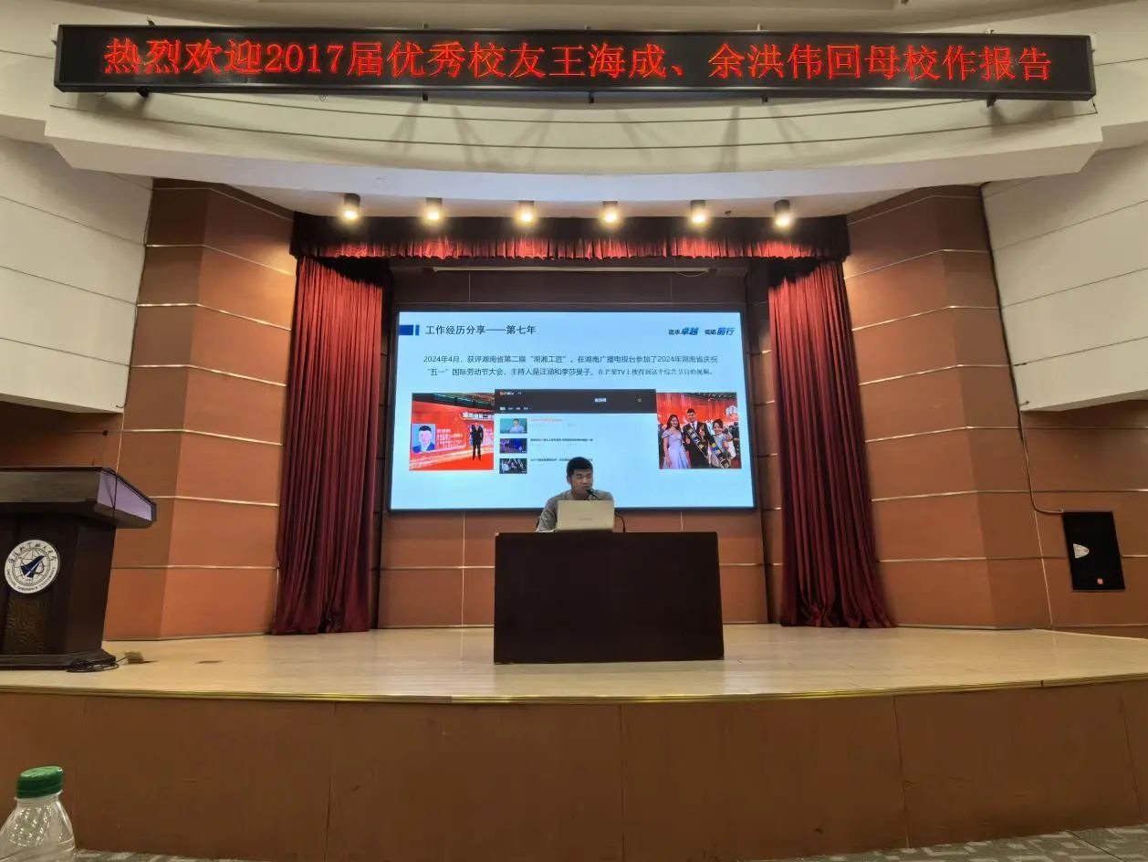 5月18日下午,张家界航空工业职业技术学院航空维修学院党总支副书记、湖南省第二届“湖湘工匠”称号获得者、2013级校友余洪伟;沈阳鲸浪文化传播有限公司创始人、2013级校友王海成,在国内报告厅相继为我院2023级全体同学分享了个人在校期间以及工作后的成长体验,将两段目标不同、经历不同的成才路径分享给在校学生,他们身上那种不畏困难、坚持奋斗、永不停止、不断攀登的精神力量深深感染了到场的每一位同学。