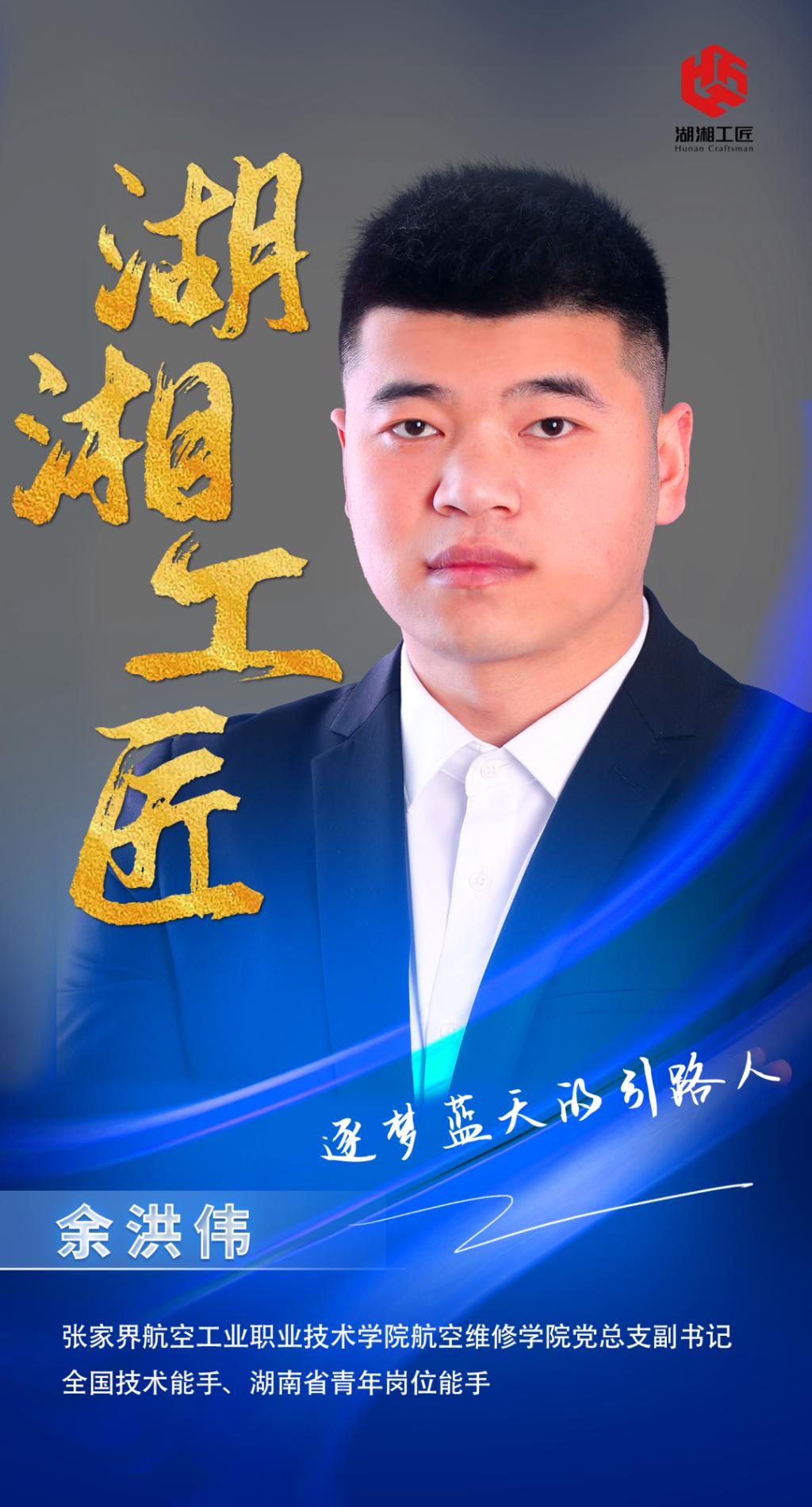 余洪伟,张家界航空工业职业技术学院航空维修学院副书记,全国技术能手、湖湘工匠、湖南省青年五四奖章获得者,金砖国家职业技能大赛副首席专家国家级无人机专业技能竞赛专家兼裁判长。